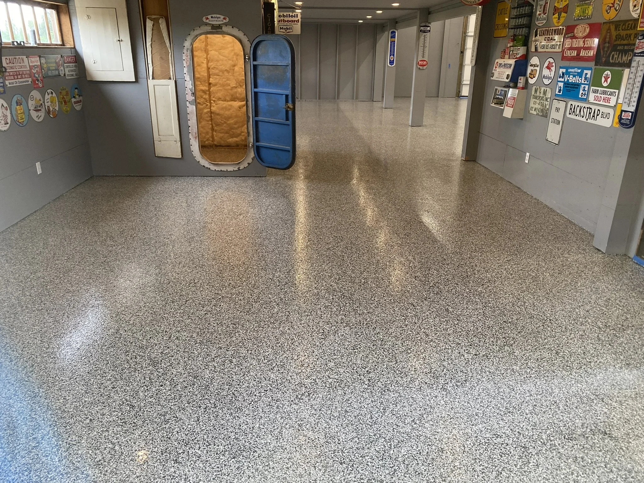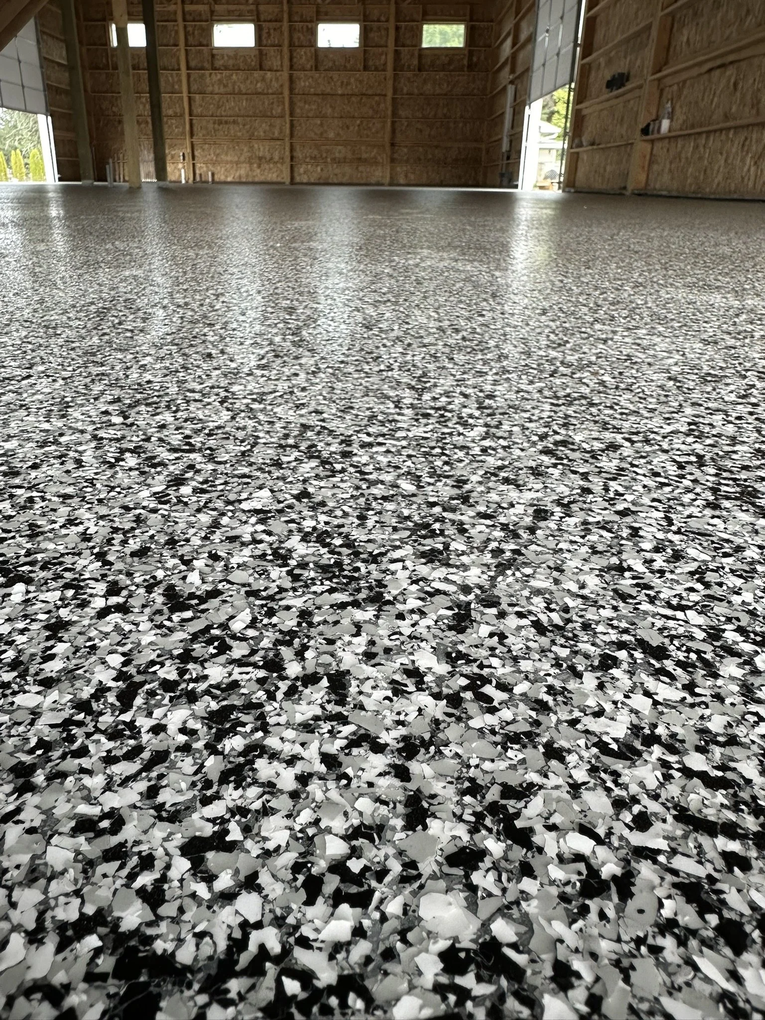 Stylish, high-gloss designs perfect for showrooms, retail, or modern interiors.Epoxy Flake Systems